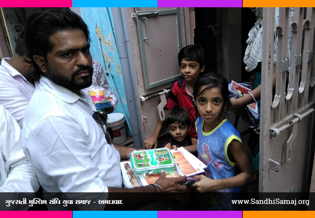 તા. ૨૦ અને ૨૧ મે ૨૦૧૭ ના રોજ ગુજરાતી મુસ્લિમ સંધિ યુવા સમાજ અમદાવાદ દ્વારા અમદાવાદ તથા ગીબપુરા ના સંધિ વિદ્યાર્થીઓ કે જે નર્સરી થી ધો. ૧૨ સુધી માં અભ્યાસ કરે છે તે તમામ વિદ્યાર્થીઓ ને સ્કૂલ કીટ (સ્કૂલ બેગ, નોટબુક્સ, લંચબોક્ષ) વિતરણ નો કાર્યક્રમ ગોઠવવામાં આવેલ હતો જેમાં ગુજરાતી મુસ્લિમ સંધિ યુવા સમાજ – અમદાવાદ ના કાર્યકરો તથા કમિટી મેમ્બર્સે ઉત્સાહ પૂર્વક ભાગ લઇ દરેક વિદ્યાર્થી ને ઘરે ઘરે જઈને સ્કૂલ કીટ આપવામાં આવેલ.